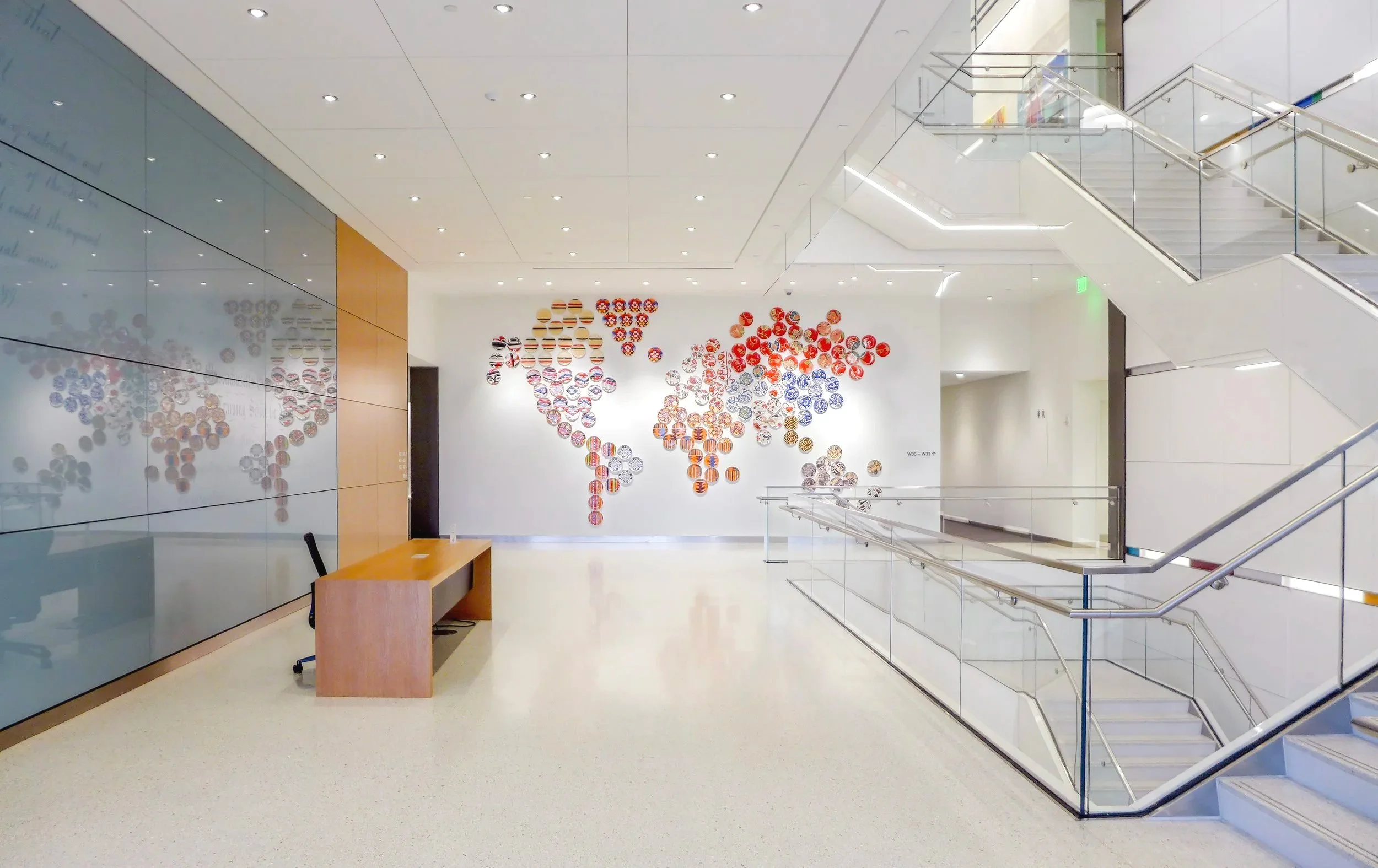 The Mass General Brigham and Women’s Somerville campus joins employees and departments previously located in 15 offices spread across Eastern Massachusetts. The artwork program aims to create an atmosphere reflecting MGH’s dedication to their four mission pillars—community, patient care, research, and education and teaching—Boston Art worked closely with the design team, the Diversity Council, and the organization’s leaders to devise a clear art program mission.